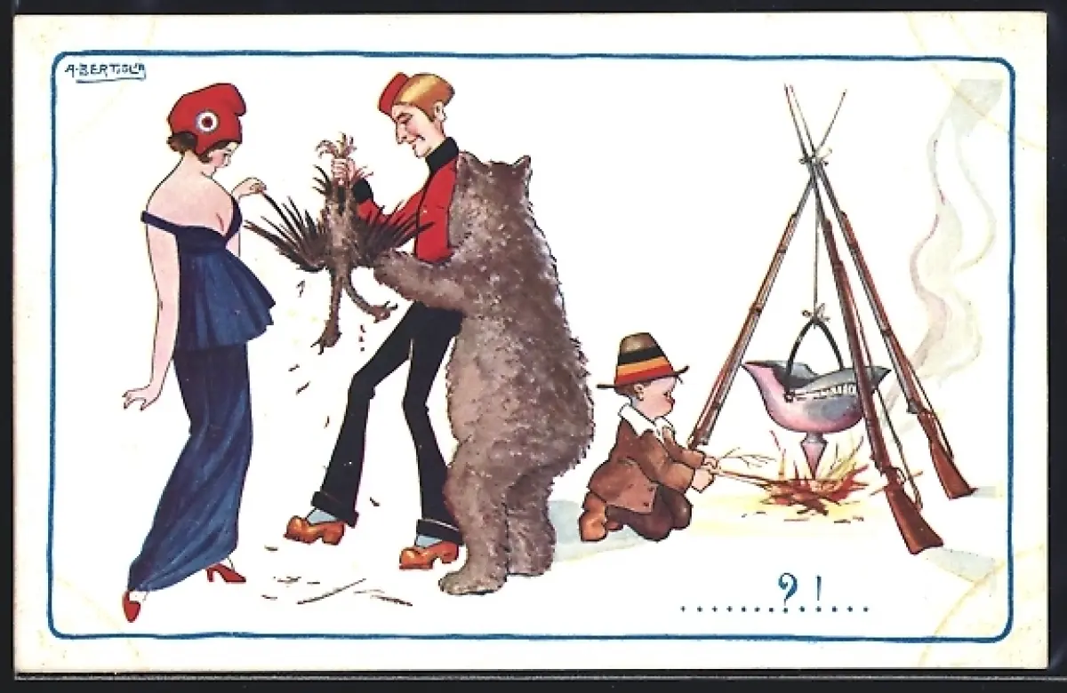 Künstler-AK A. Bertiglia: Alliierte rupfen einen Adler, Propaganda Entente