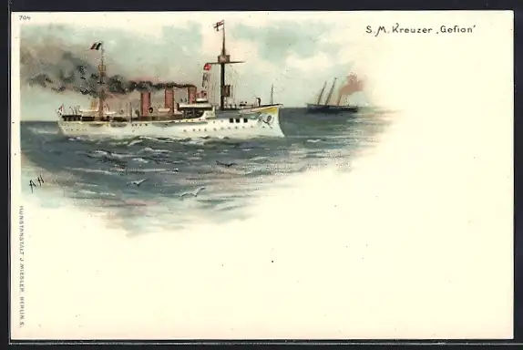 Künstler-AK A. Heide: SM Kreuzer Gefion vom Ostasiengeschwader