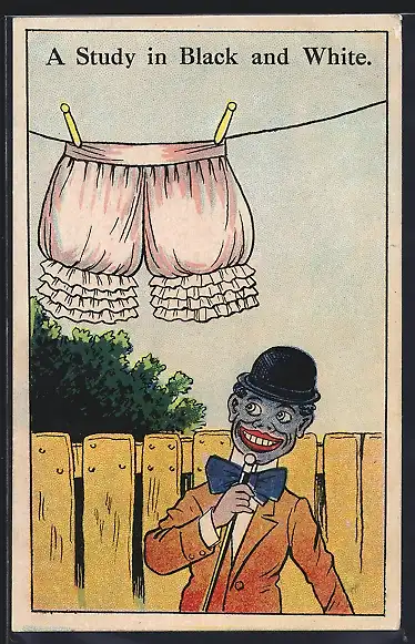 Künstler-AK A Study in Black and White, Farbiger mit Rüschen-Unterhose