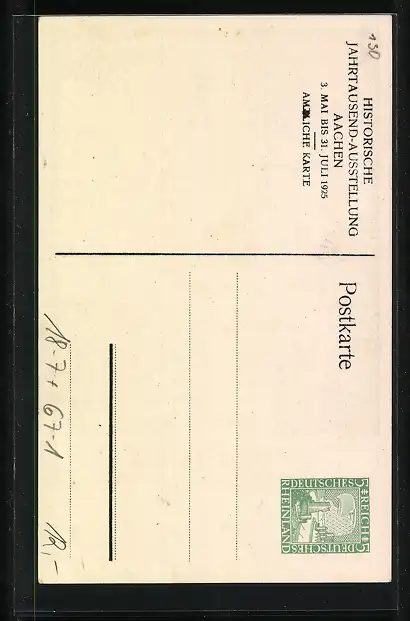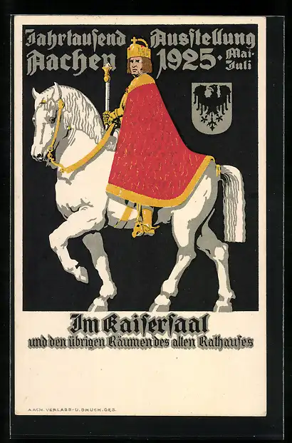 Künstler-AK Aachen, Historische Jahrtausend-Ausstellung, 3. Mai - 31. Juli 1925, Im Kaisersaal, Ganzsache 5 Pfennig