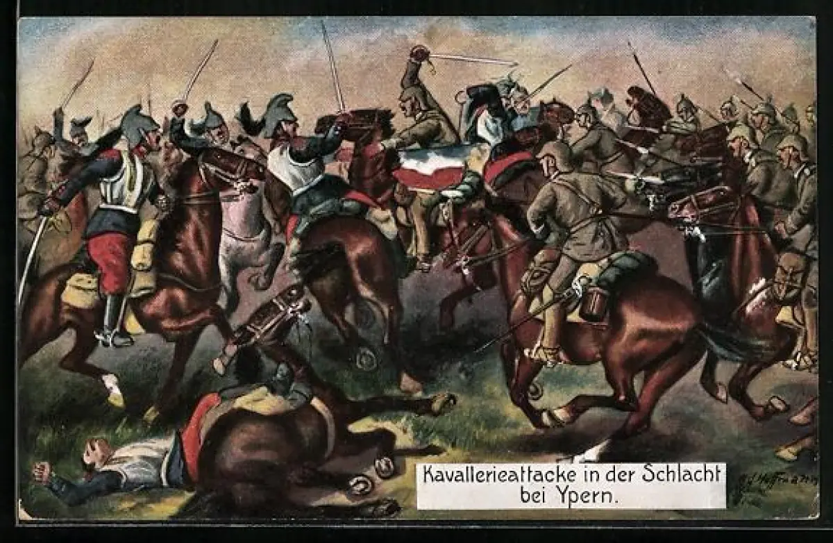 Künstler-AK Ad. Hoffmann: Ypern, Kavallerieattacke in der Schlacht