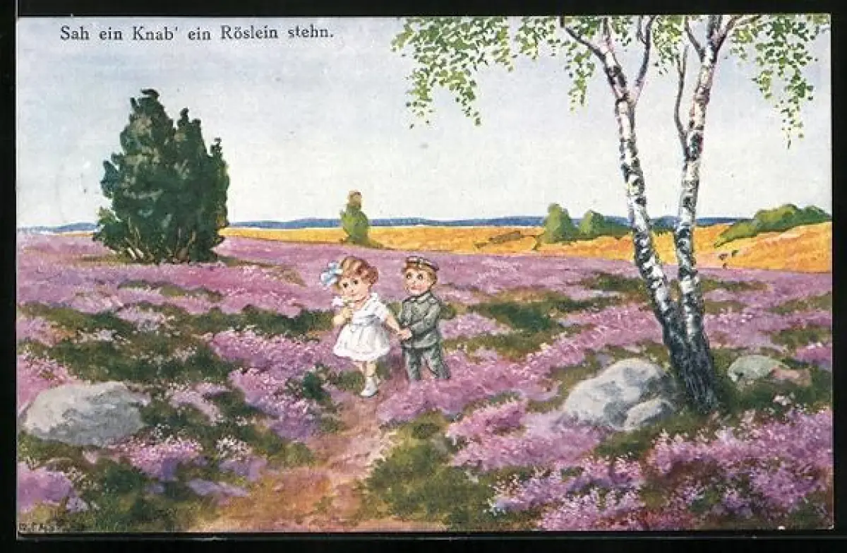 Künstler-AK Ad.Hoffmann: Sah ein Knab` ein Röslien stehn