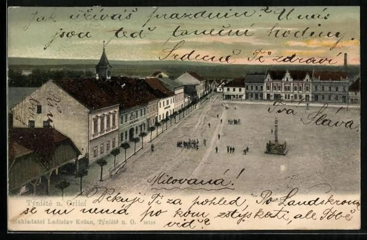 Künstler-AK Adler Kosteletz / Kostelec nad Orlici, Monument am Marktplatz