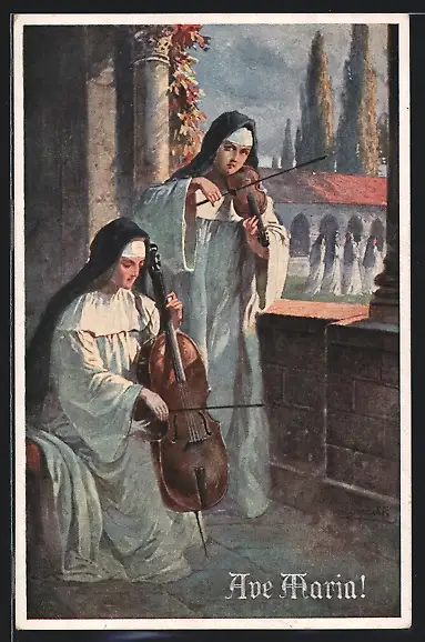 Künstler-AK Adolf (Jodolfi): Ave Maria!, Musizierende Nonnen