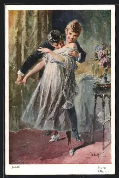 Künstler-AK Adolf (Jodolfi): Herr küsst Frau im Arm