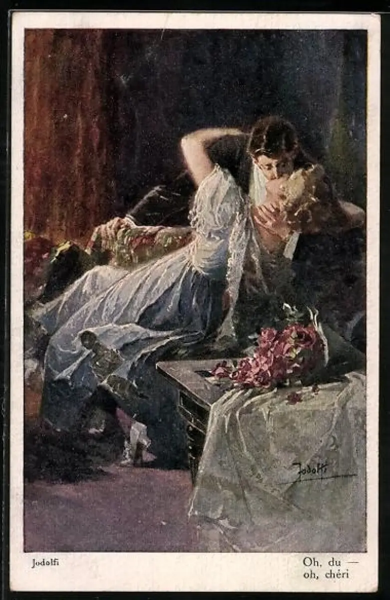 Künstler-AK Adolf (Jodolfi): Oh du..., leidenschaftliches Liebespaar küsst sich auf dem Sofa