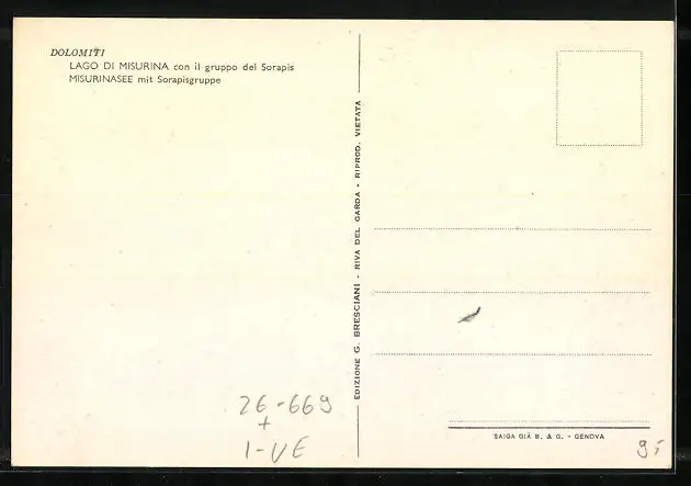 Künstler-AK Aldo Raimondi: Misurinasee, Häuser am See mit Sorapisgruppe