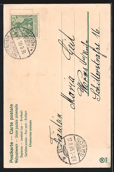 alte Ansichtskarte, gelaufen 1905, guter Zustand