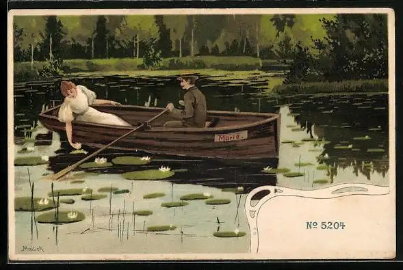 Künstler-AK Alfred Mailick: Pärchen unternimmt im Boot Marie eine Fahrt