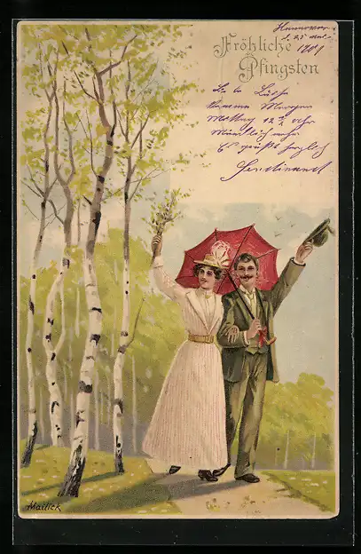 Künstler-AK Alfred Mailick: Pfingstspaziergang eines Paares durch ein Birkenwäldchen