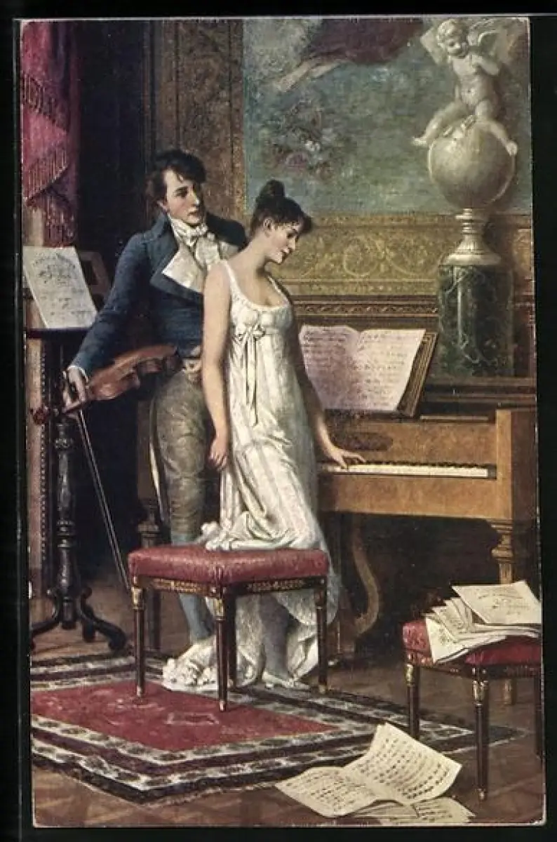 Künstler-AK Alte Historie am rezenten Klavier