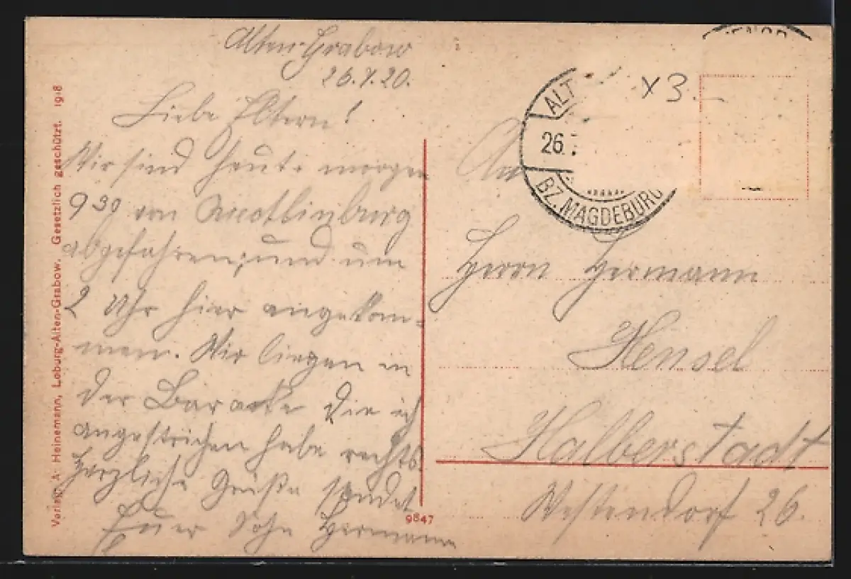 alte Ansichtskarte, gelaufen, Briefmarke entfernt, rückseitig Oberflächenschaden, guter Zustand