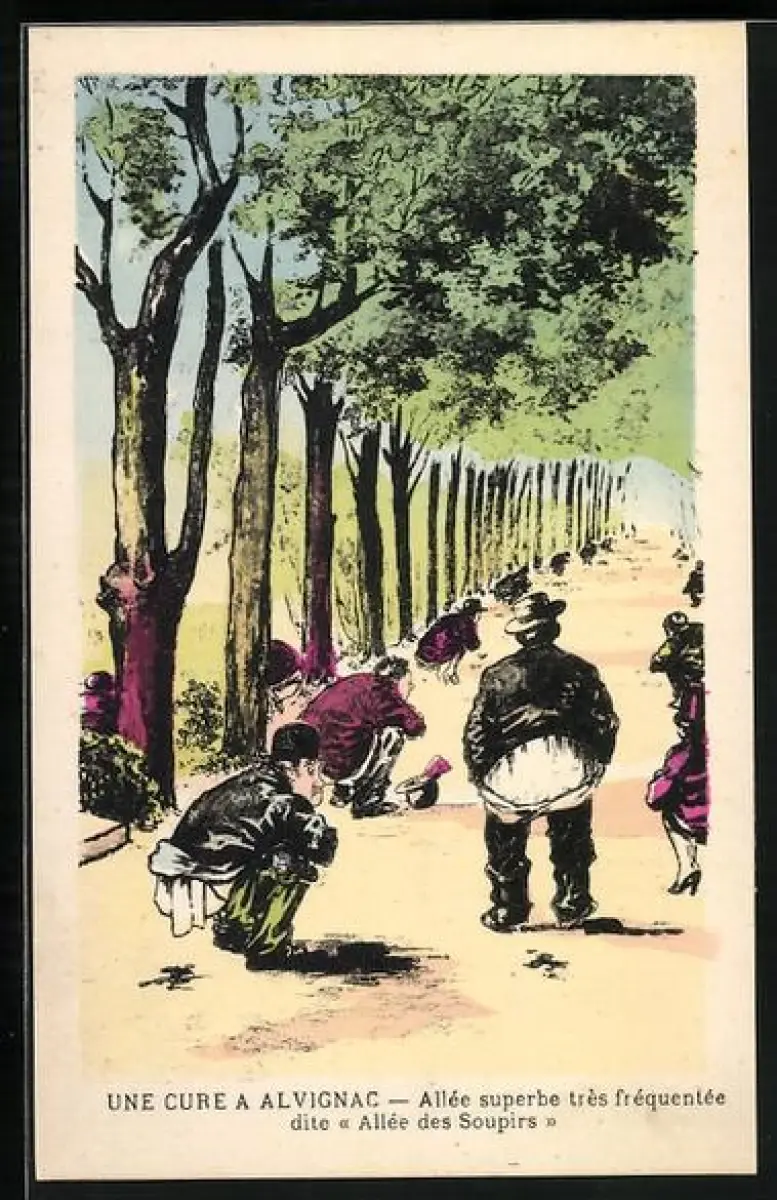 Künstler-AK Alvignac, Männer kacken im Wald, Toilettenhumor