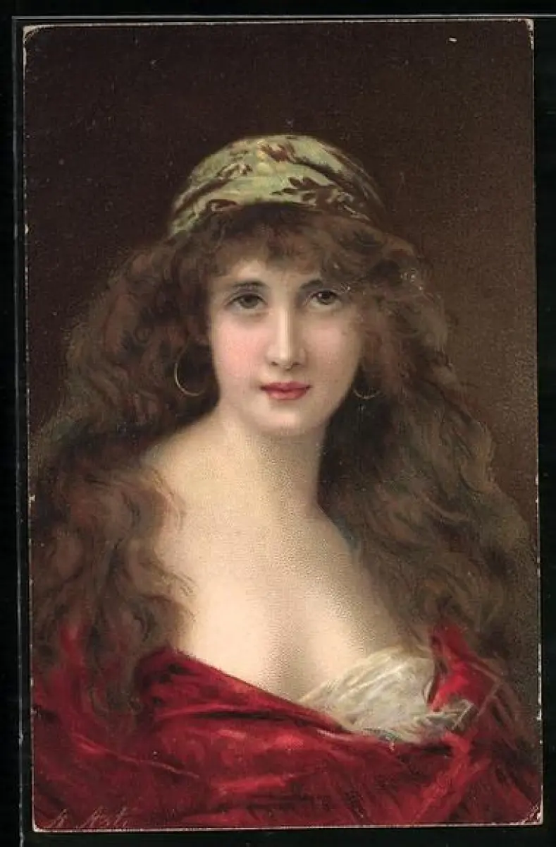 Künstler-AK Angelo Asti: Junge Dame mit Ohrringen und Kopftuch