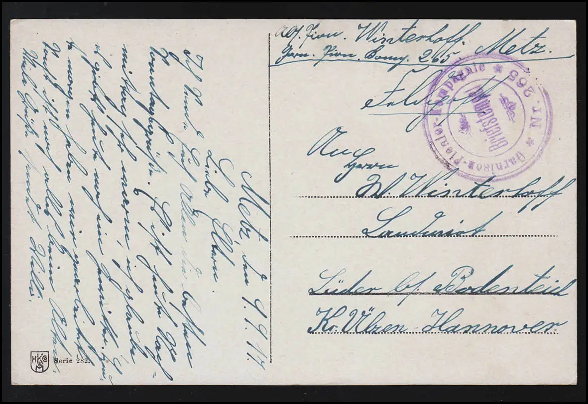 Karte von der Garnison Pionier Kompagnie Nr. 265 in Metz.