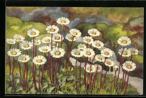 Künstler-AK Anna Haller: weiss blühende Margeriten