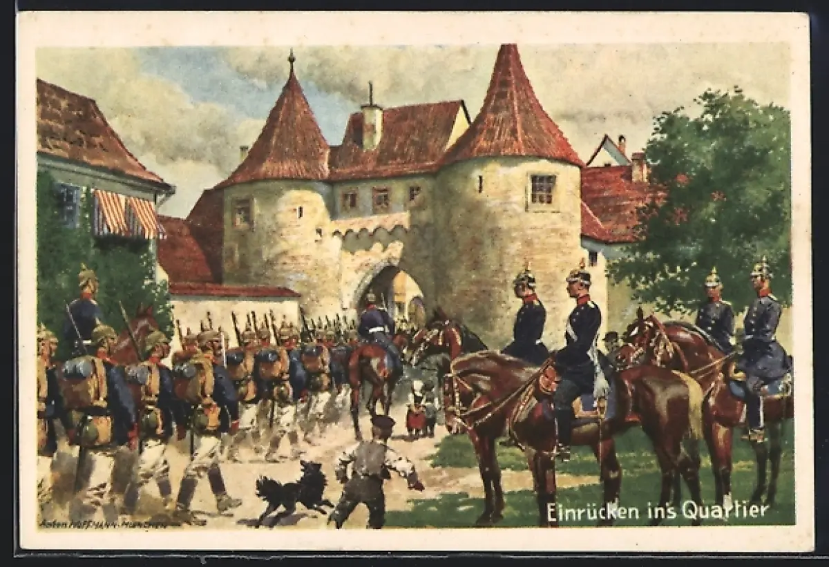 Künstler-AK Anton Hoffmann - München: Einrücken ins Quartier