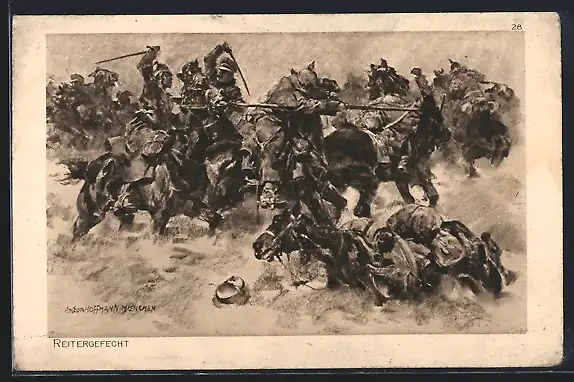 Künstler-AK Anton Hoffmann - München: Reitereigefecht
