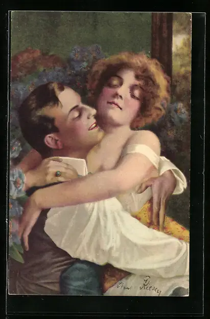 Künstler-AK Arno von Riesen: verliebtes Paar umarmt sich