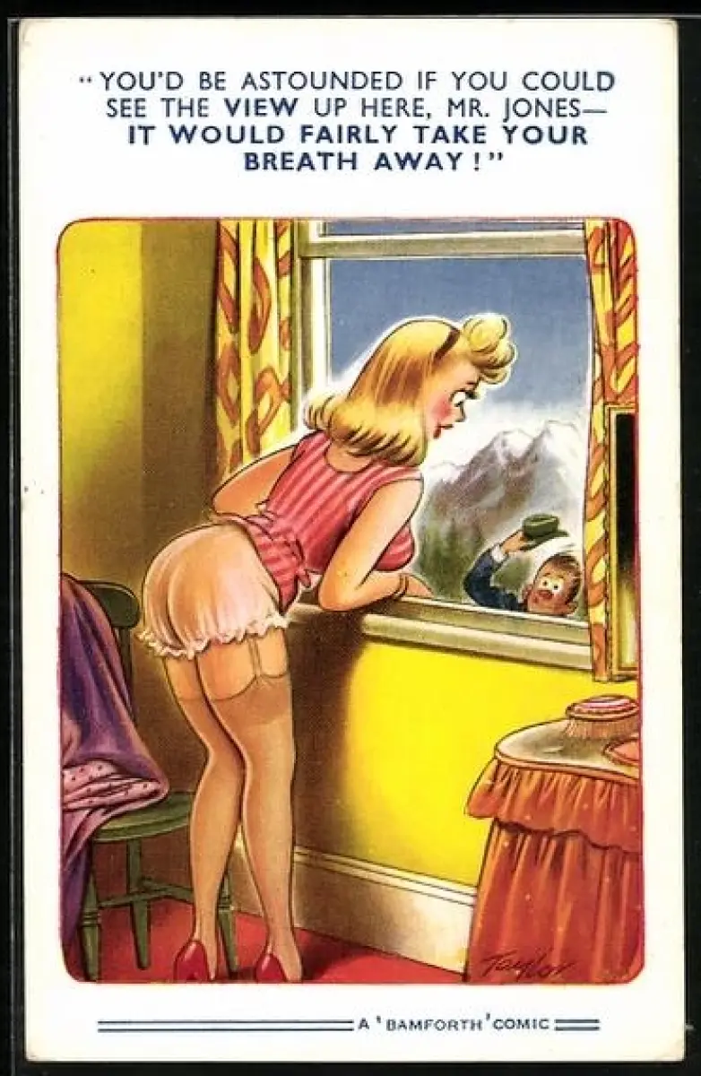 Künstler-AK Arnold Taylor: Frau flirtet mit einem Mann vor ihrem Fenster