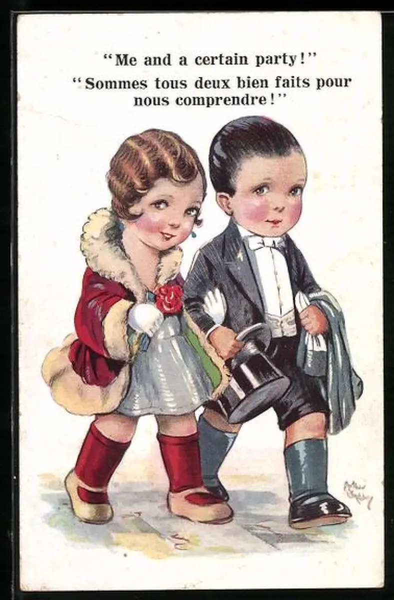 Künstler-AK Arthur Butcher: Kleines Paar in Abengarderobe