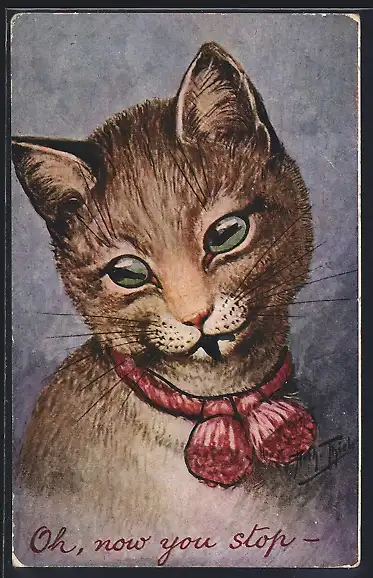 Künstler-AK Arthur Thiele: Eine Katze mit rotem Halsband