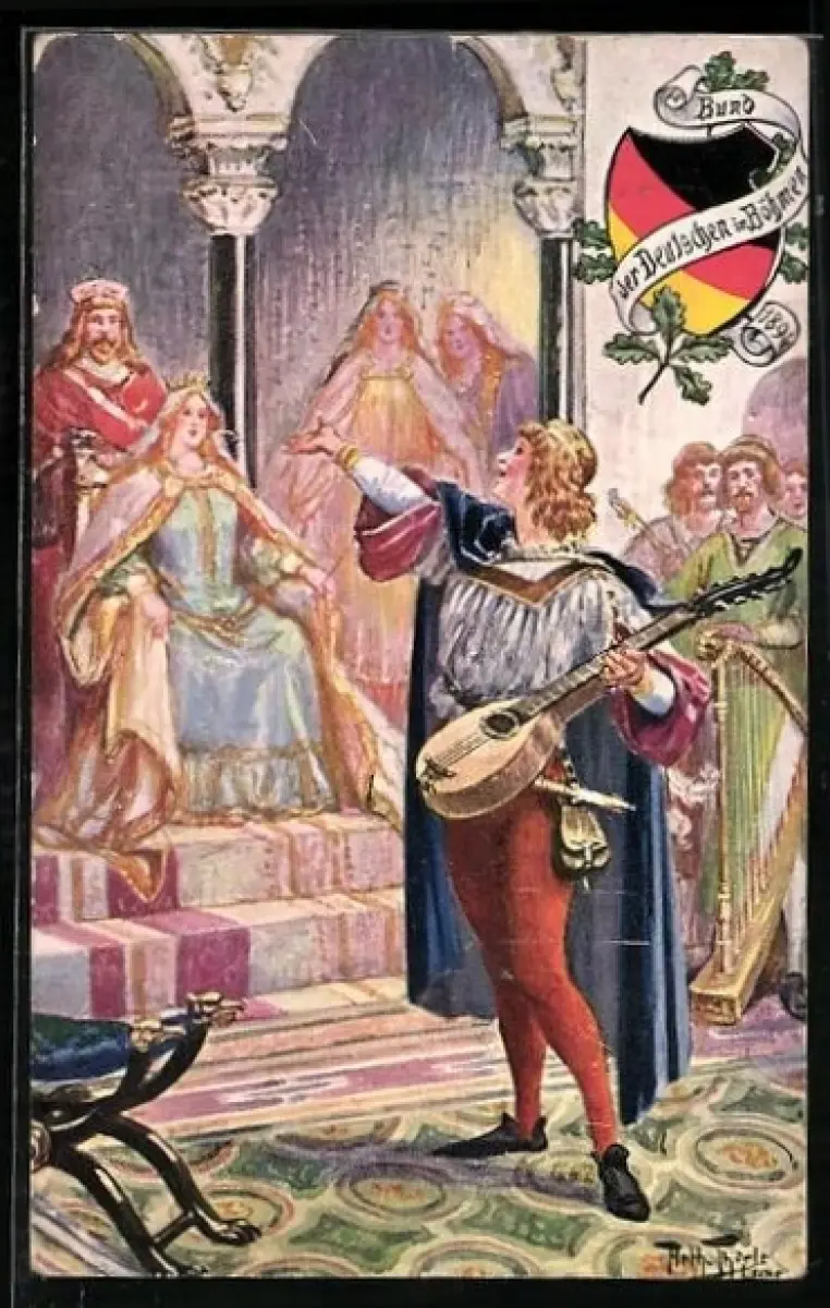 Künstler-AK Arthur Thiele: Minnesänger am Königshof