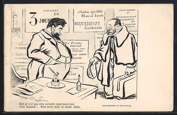 Künstler-AK Arzt verspricht einem Patienten, in drei Minuten geheilt zu sein