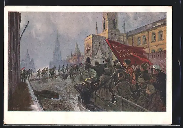 Künstler-AK Aufgebrachte Soldaten bei der Revolution in Moskau 1917