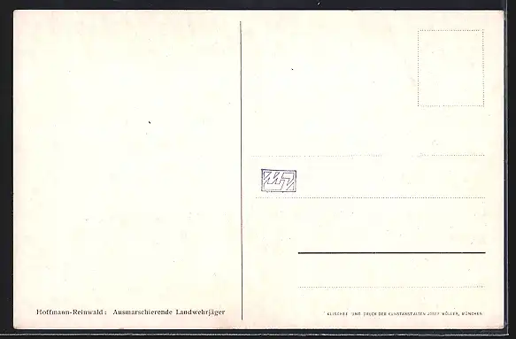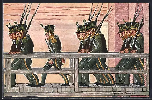 Künstler-AK Ausmarschierende Landwehrjäger in Uniform mit Gewehr