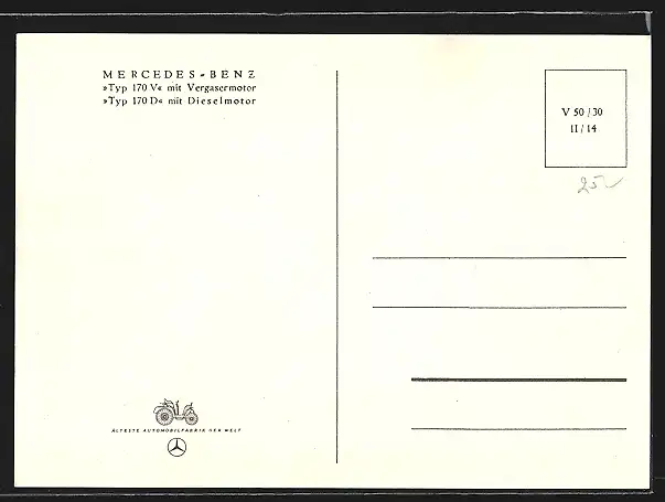 Künstler-AK Auto Mercedes Benz Typ 170 V mit Vergasermotor, Typ 170 D mit Dieselmotor