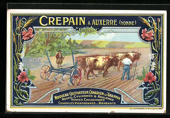 Künstler-AK Auxerre / Yonne, Crepain a Auxerre, Bauer mit Ochsengespann pflügt seinen Acker