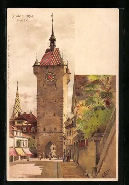 Künstler-AK Baden, Blick auf den Stadtthurm
