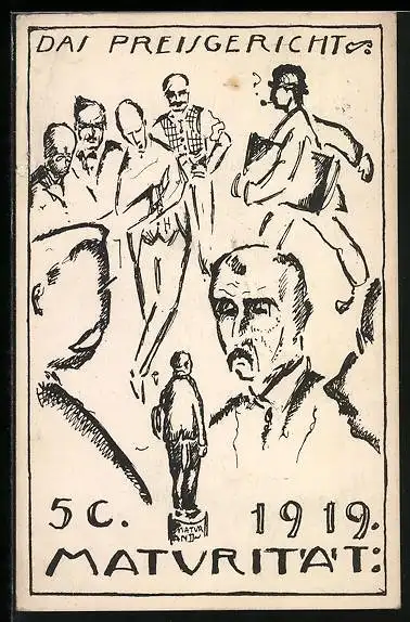 Künstler-AK Basel, Maturität 1919 5C, Das Preisgericht tagt
