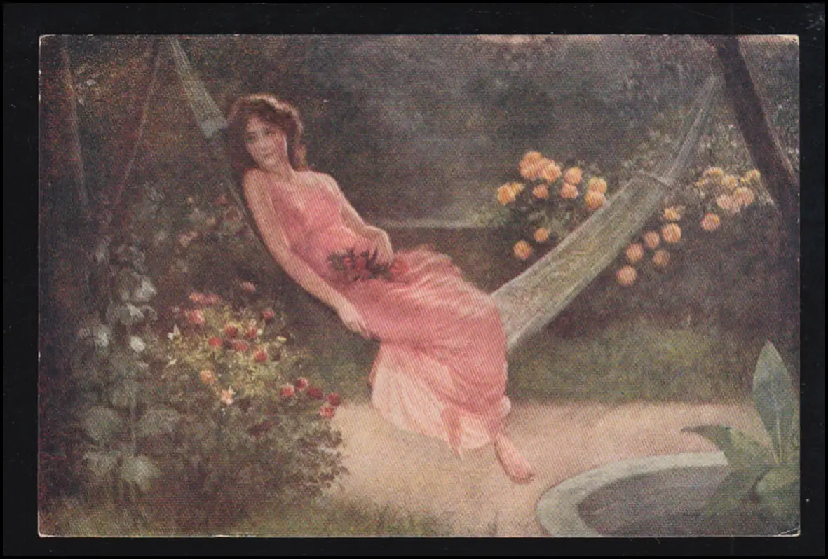 Künstler-AK Bauduin: Süßes Nichtstun - Frau in Hängematte, ungebraucht