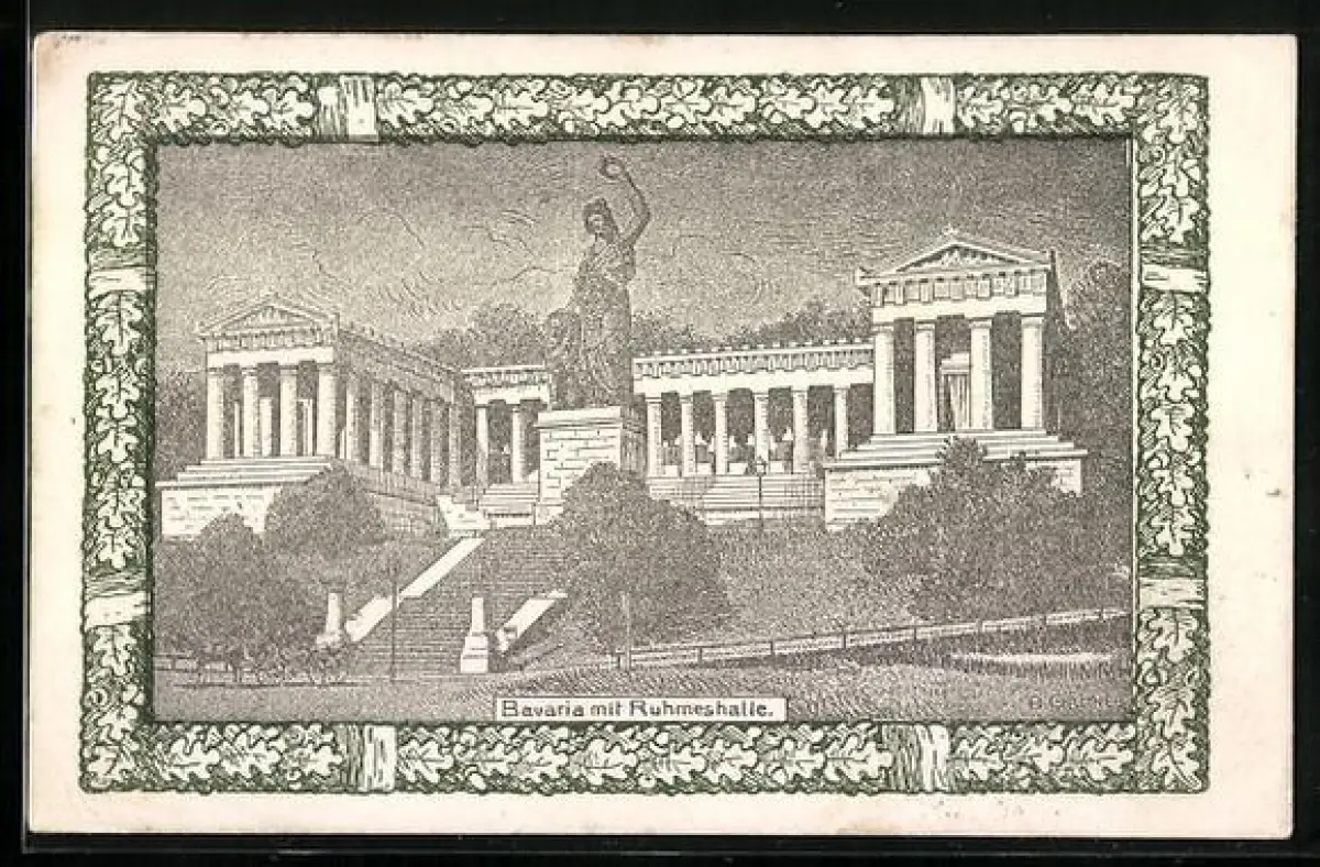 Künstler-AK Bavaria mit Ruhmeshalle