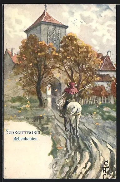 Künstler-AK Bebenhausen, Schreitturm mit Reiter