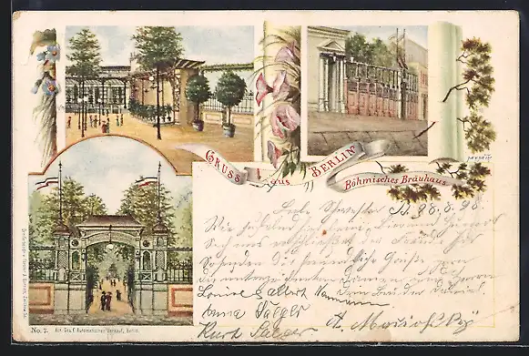 Künstler-AK Berlin, Gasthaus Böhmisches Bräuhaus, Wirtschaftsgarten Landsberger Allee 11-13, Ganzsache PP9 F7 /05