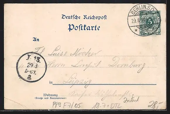 alte Ansichtskarte, gelaufen 1898, Eckknicke unten, guter Zustand