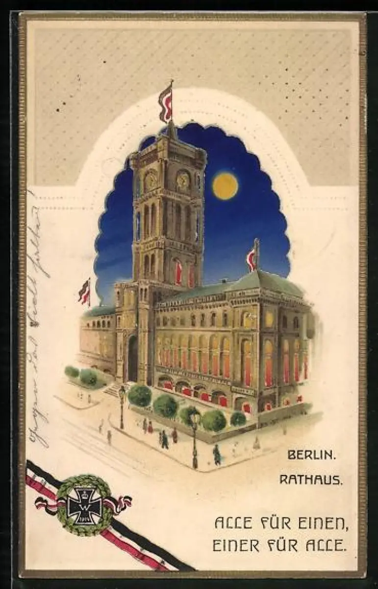 Künstler-AK Berlin, Rathaus, Propaganda 1. Weltkrieg, Halt gegen das Licht