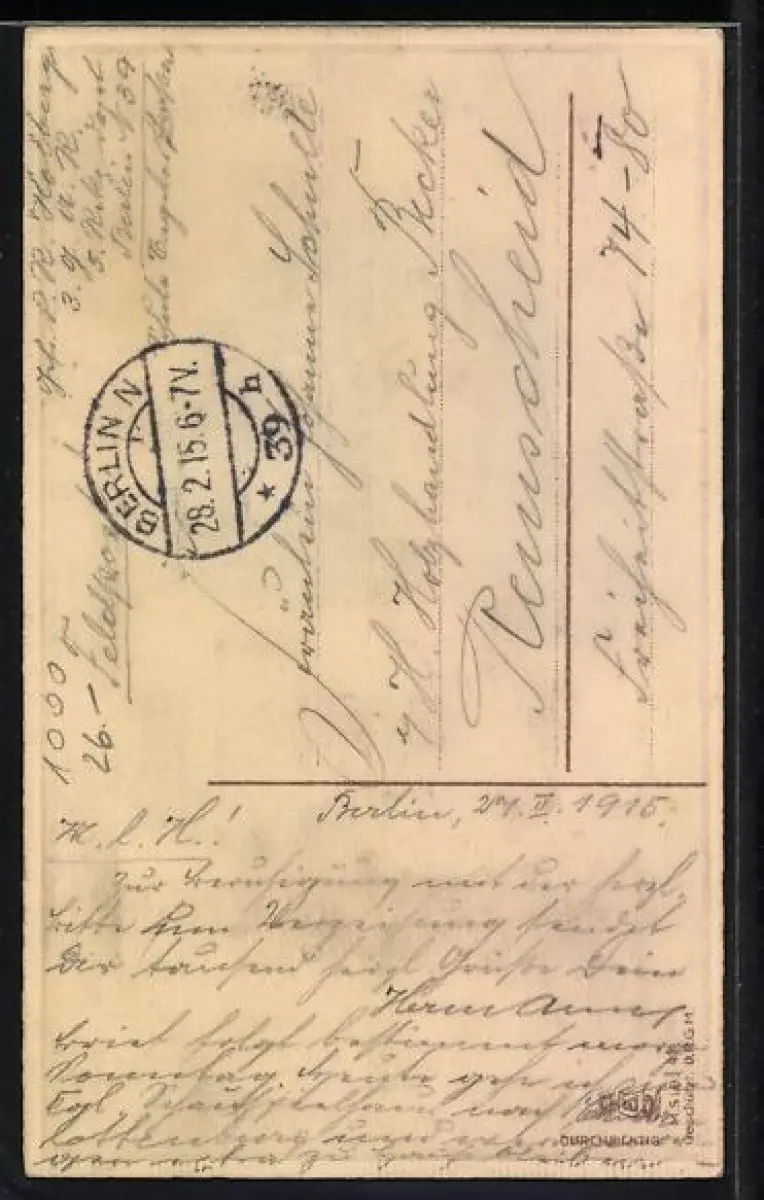 alte Ansichtskarte, gelaufen 1915 als Feldpost, guter Zustand