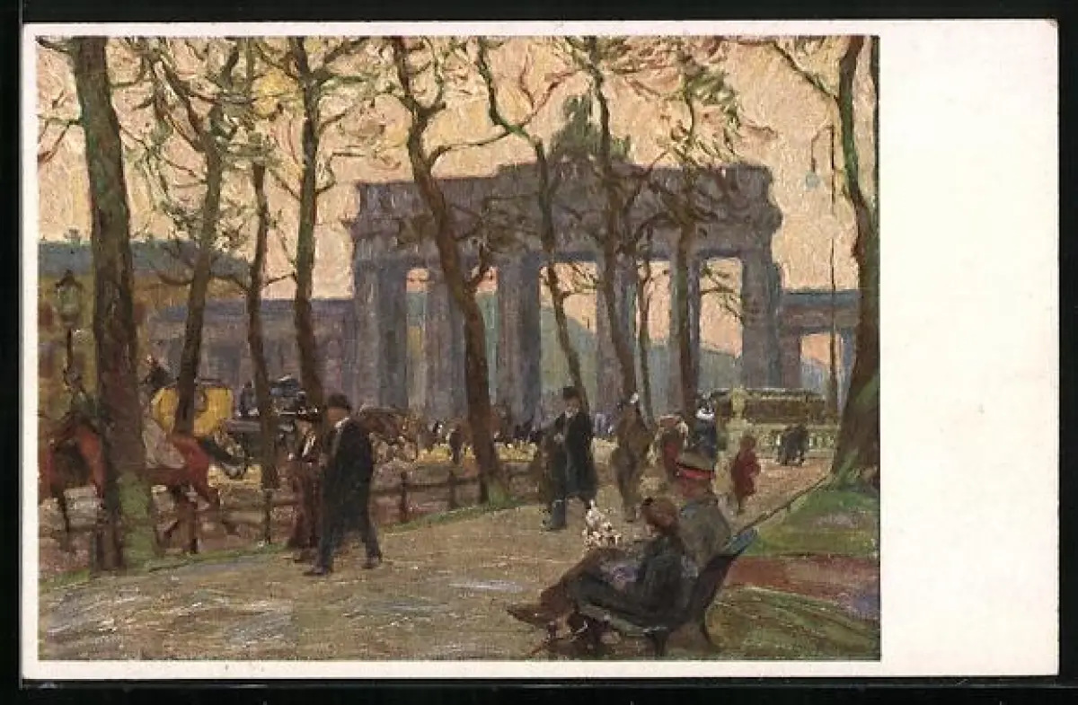 Künstler-AK Berlin, Strasse am Brandenburger Tor