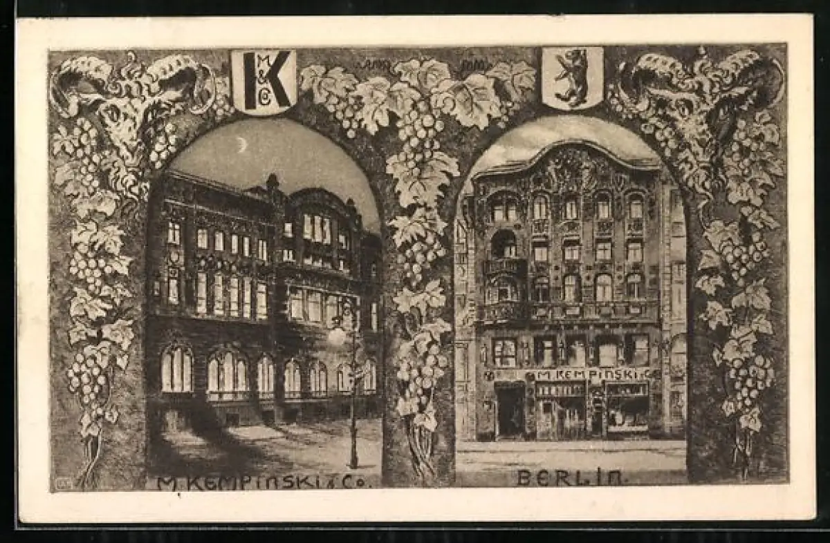 Künstler-AK Berlin-Tiergarten, Weinstuben M. Kempinski & Co., Wappen