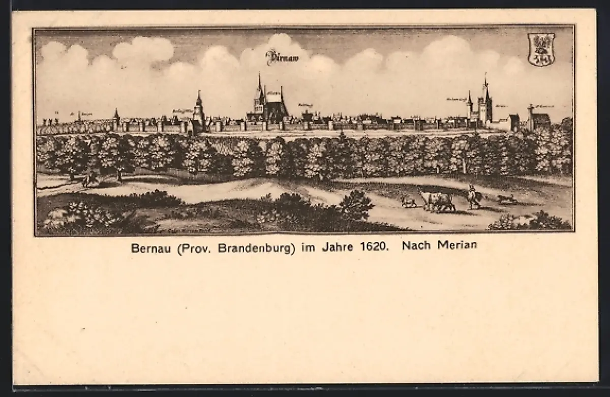 Künstler-AK Bernau / Mark, Stadtansicht nach Merian 1620