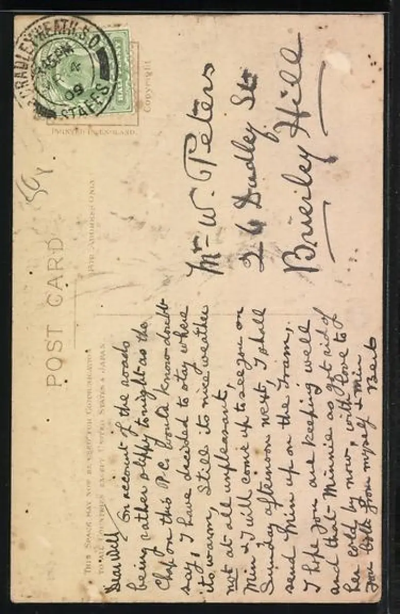 gelaufen 1909, rückseitig Oberflächenschaden, guter Zustand