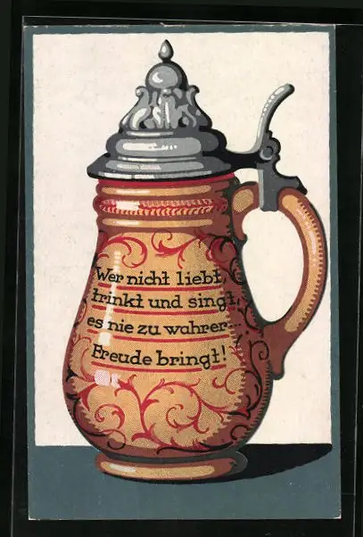 Künstler-AK Bierkrug, Wer nicht liebt, trinkt und singt, es nie zu wahrer Freude bringt!