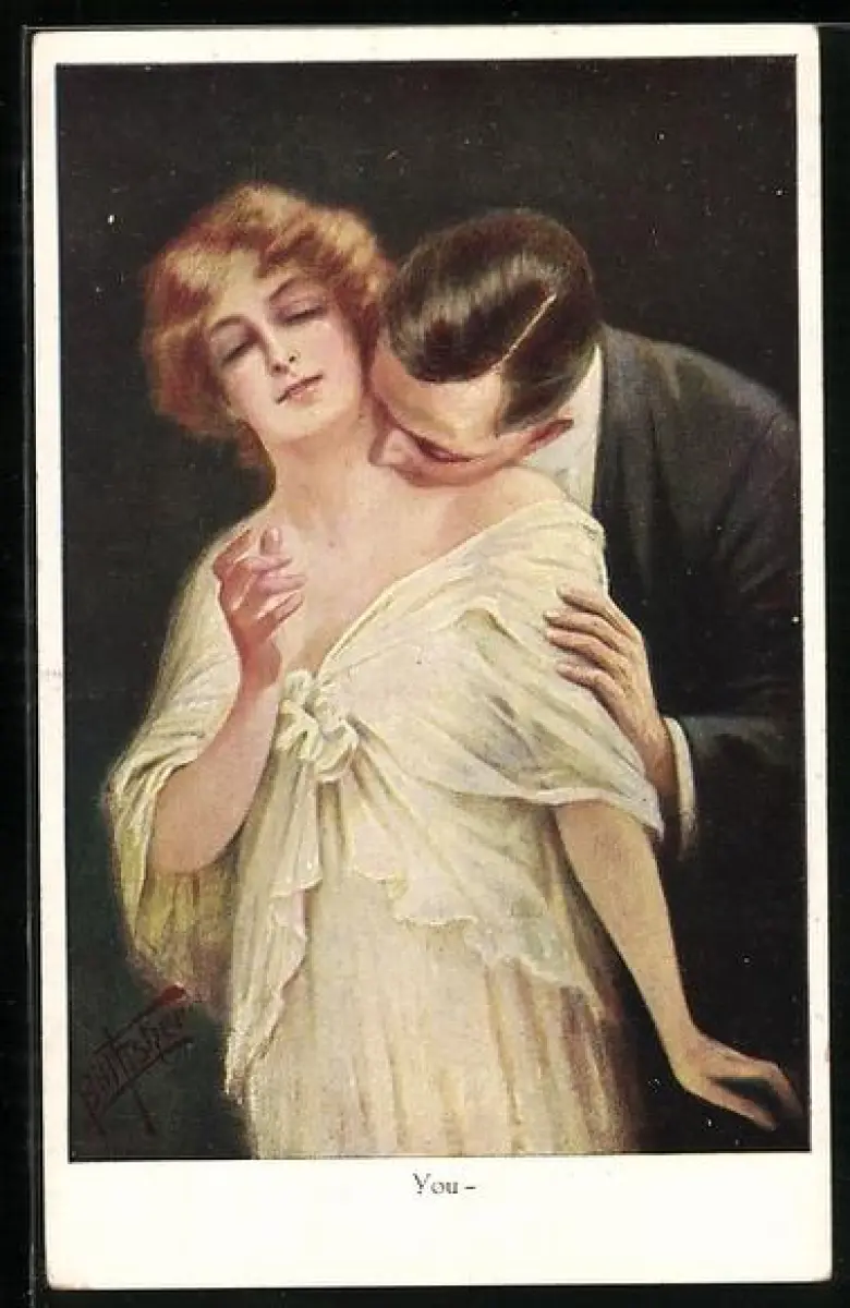 Künstler-AK Bill Fisher: Mann legt seinen Kopf an den Hals einer Frau