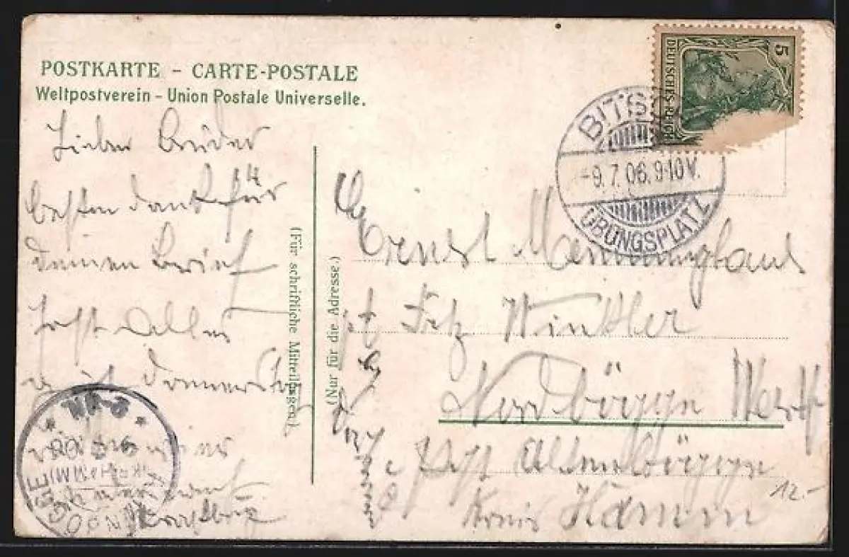 alte Ansichtskarte, gelaufen 1906, guter Zustand