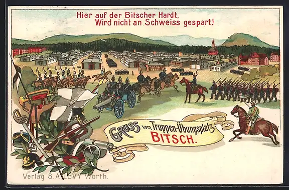 Künstler-AK Bitsch, Trupppen-Übungsplatz, Lager
