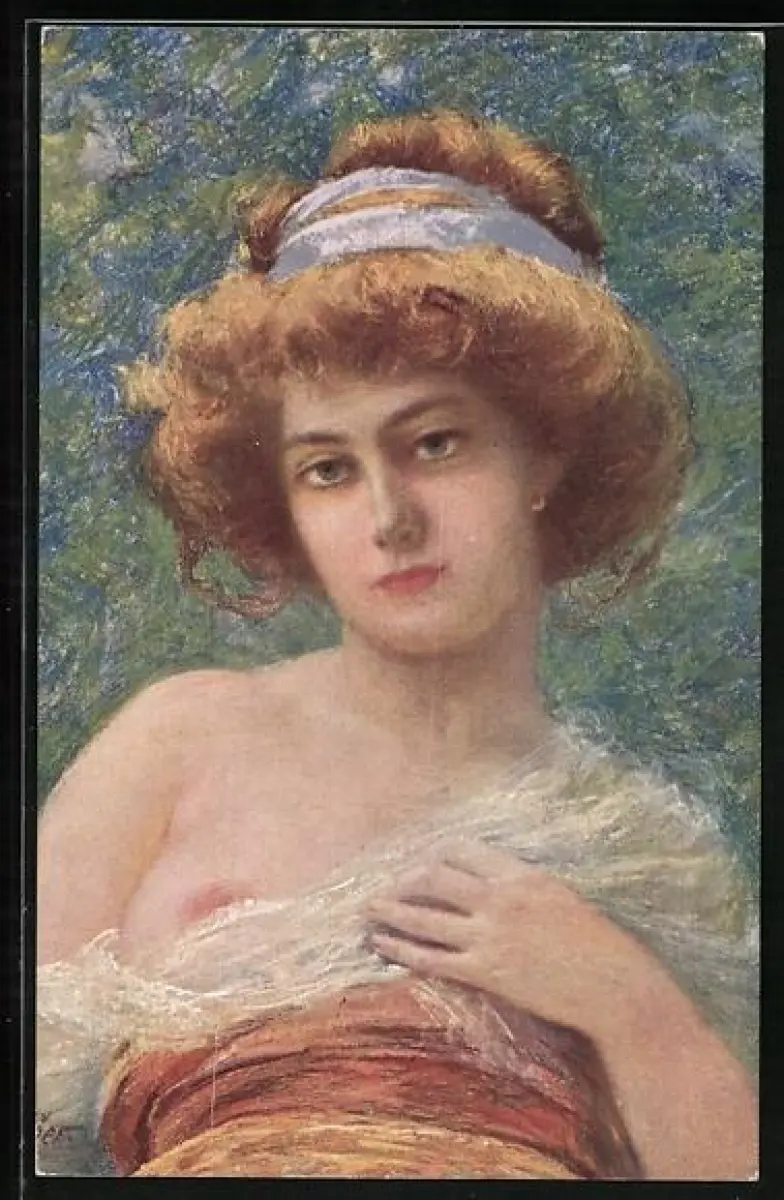 Künstler-AK Blonde Dame mit halb entblösster Brust